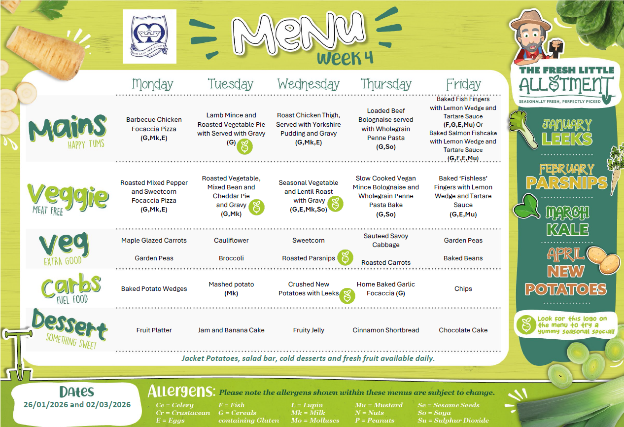 School meals are provided by Accent. No pre-booking is required. Children will choose their meal on the day.